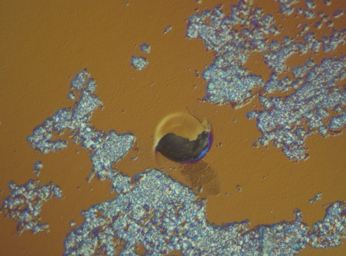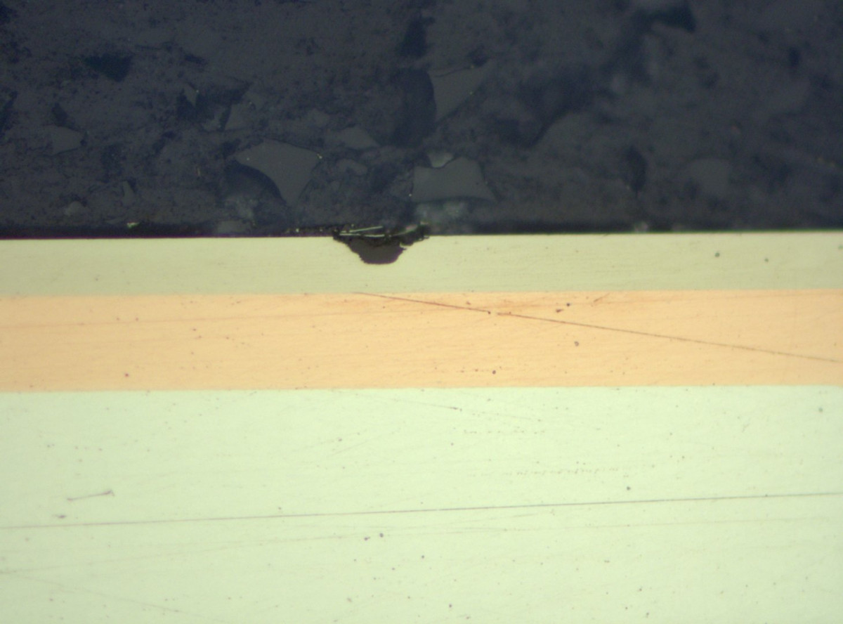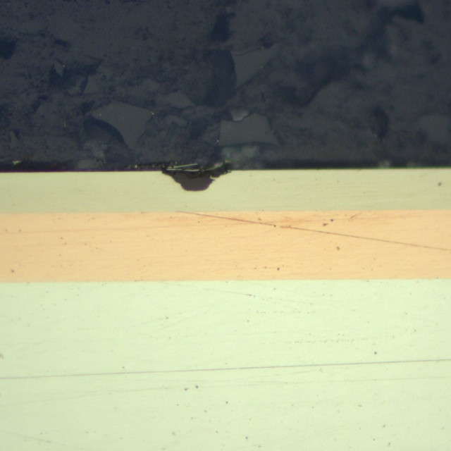 - Teils verschlossene Blasen auf Oberfläche aufgrund von Unregelmäßigkeiten in der Abscheidung der obersten galvanischen Schichten;