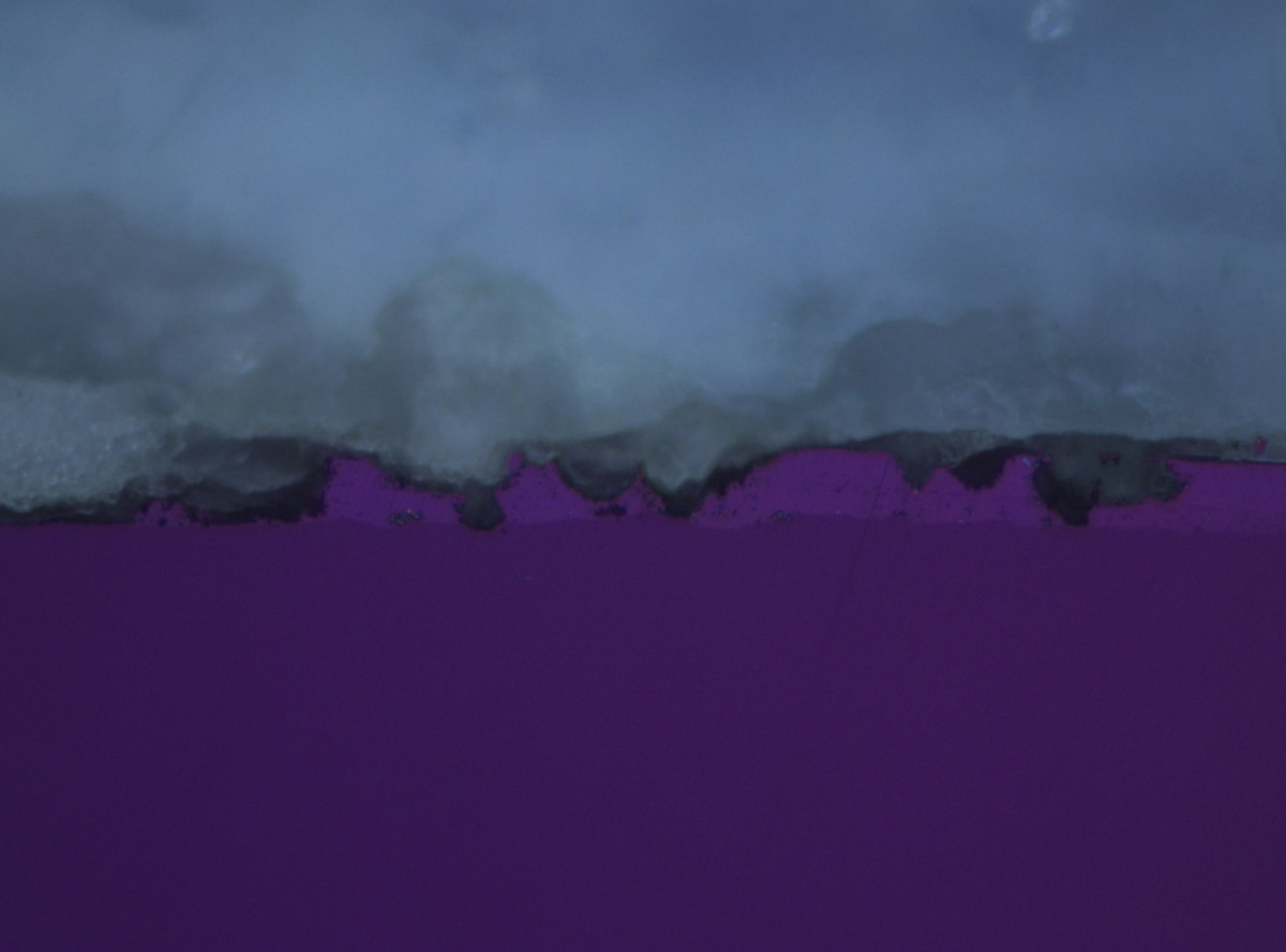 Lokaler Weißrostangriff im polarisiertem Licht – Vergrößerung: 50:1