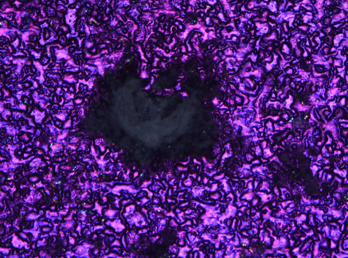 Metallgraphisches Schliffbild durch Angriff im polarisiertem Licht – Vergrößerung: 500:1 -